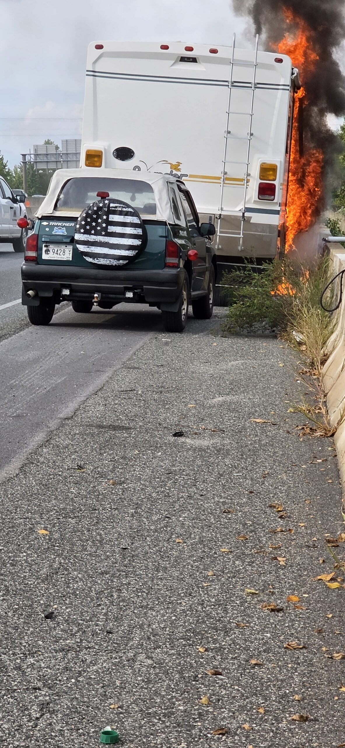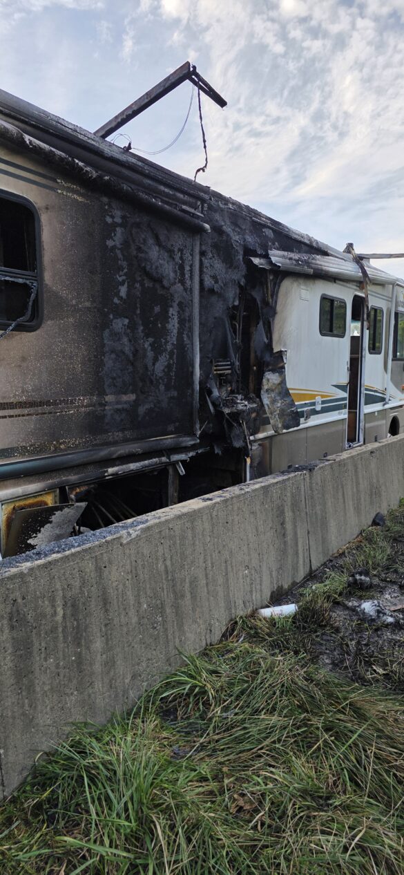 I wish I could have gotten this done sooner, but I have been busy. To calm a lot of your fears, the fire had nothing to do with the fridge, but the fire started on Monday afternoon, about 4:30PM. Yes. Rush hour. All day going over potholes, as you know very well, are noisy and sometimes violent with plenty of noise. The fire started on the inside of the inner right rear wheel. As far as I can tell something I hit in the road bounced up, hit a brake line and got fluid on hot brakes? Maybe the inside tire blew and started it? The fire chief said there was no way they would be able to determine exactly what caused it. Either way, being in that stop and go traffic like I was, I’m sure the brakes were pretty hot, probably hot enough to maintain a fire.