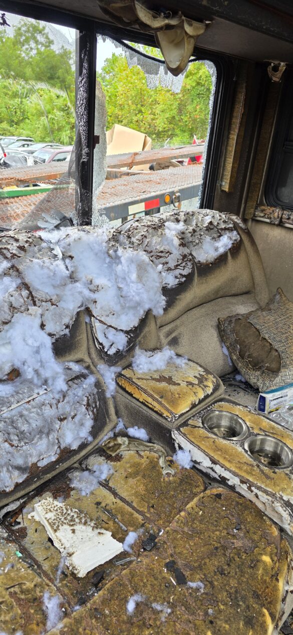 Insurance asked after the fire what happened and my narrative above is almost the exact same. Also, they wanted to know any upgrades, electronics added, anything that would increase or decrease the value. Before the fire pictures are also important to the value, showing upgrades, electronics, again. Then they want all the pictures you can give them after the fire. They will have the adjuster go look at it but when you look at the pictures, you’ll see what a waste it was.